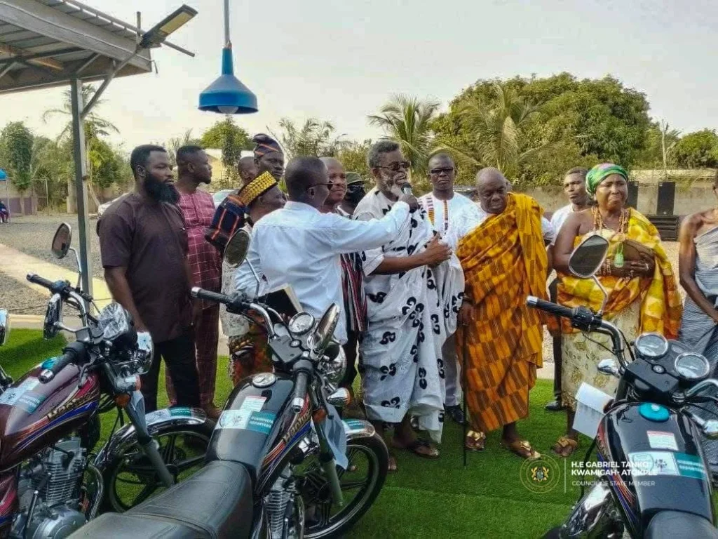 H.E Gabriel Tanko Kwamigah-Atokple, a Council of State Member and founder of the Tanko Foundation, has once again shown his strong support for grassroots development by donating seven motorcycles to the Duamenefa Foundation to facilitate the work of community reporters.